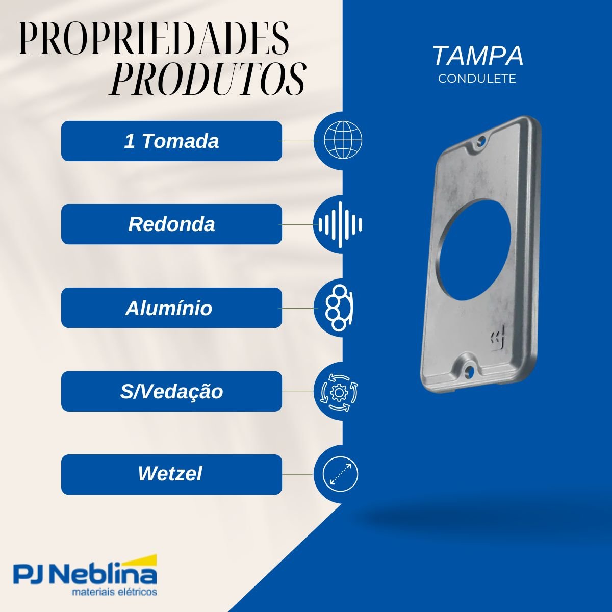 Tampa Condulete 1 Tom Redonda Alumínio 1/2-3/4 S/Pintura S/Vedação - Wetzel - Código Fabricante: TPSA-05 ALU S/ PINT