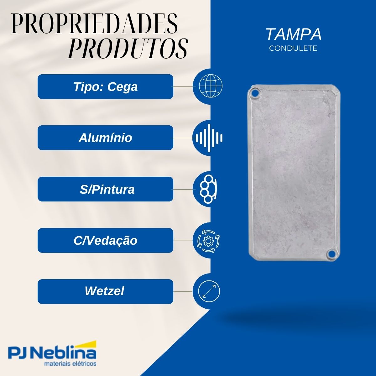 - Tampa cega de condulete (capa de fechamento para caixa de passagem elétrica sem dispositivos).