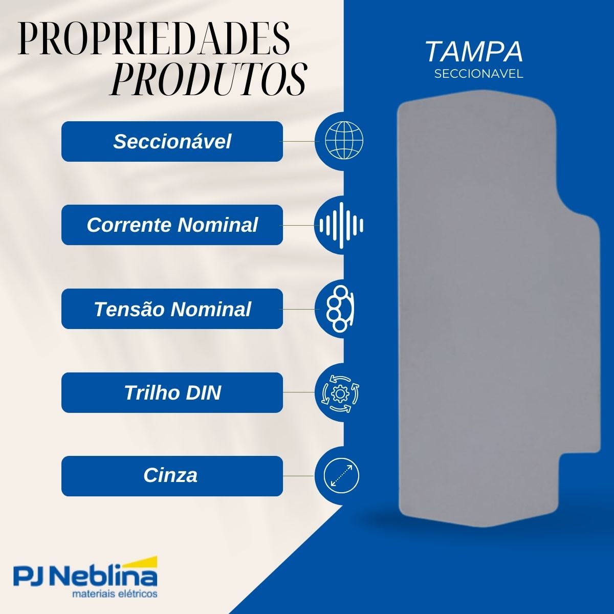 - Isolamento Elétrico: Fabricada em material termoplástico de alta qualidade e com excelentes propriedades dielétricas, a tampa assegura o isolamento elétrico.