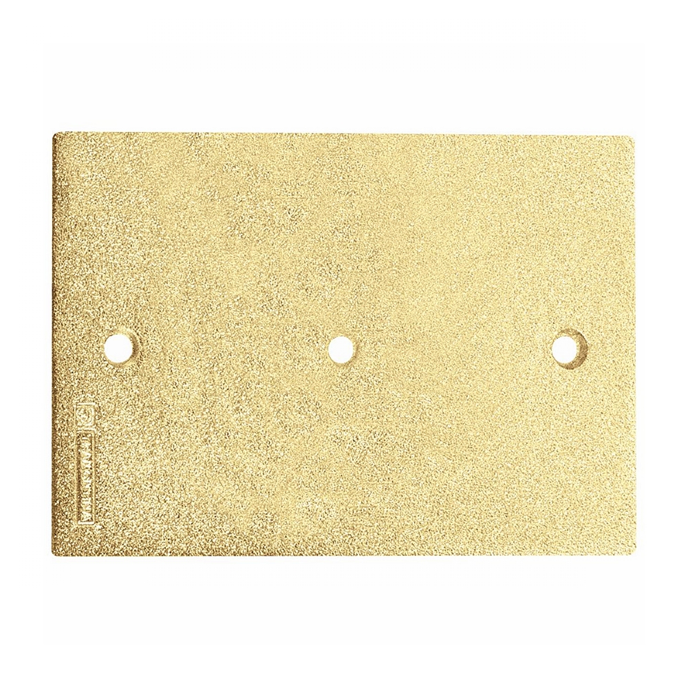 Produzida em alumínio de elevada resistência mecânica e a corrosão, acabamento com pintura eletrostática na cor dourada. De execução simples para pavimentos de lojas, escritórios, bancos e outros ambientes cobertos. Fornecida com parafusos para prender na caixa.