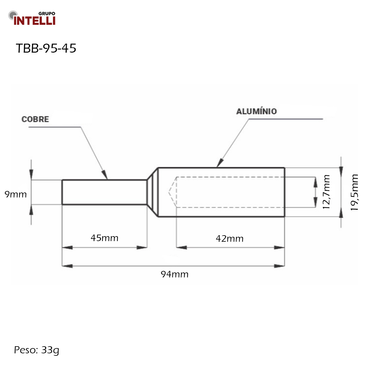 Material: Pino em cobre eletrolítico e barril em alumínio extrudado. Fornecido com composto antióxido INTELTROX
