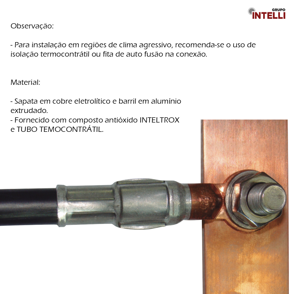 Material: Sapata em cobre eletrolítico e barril em alumínio extrudado. Fornecido com composto antióxido