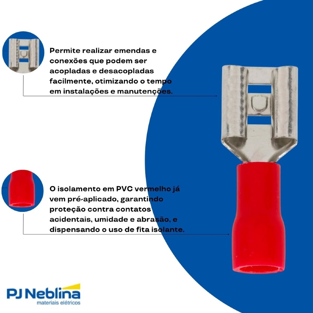 - Possui isolamento em PVC na cor vermelha, facilitando a identificação e proporcionando proteção adicional contra curtos-circuitos.