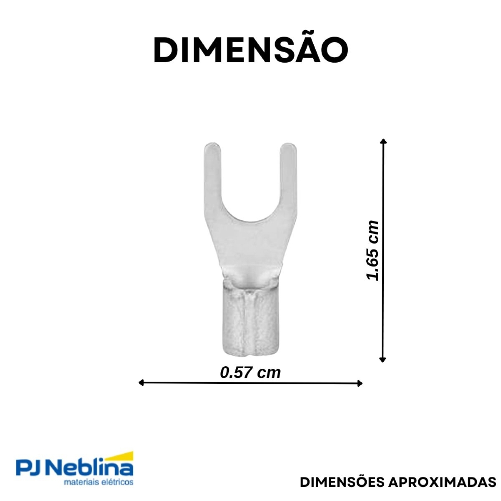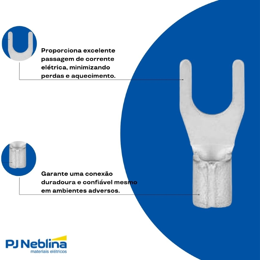 - O formato em "U" (forquilha) facilita a instalação e remoção em bornes de parafuso sem a necessidade de remover totalmente o parafuso.
