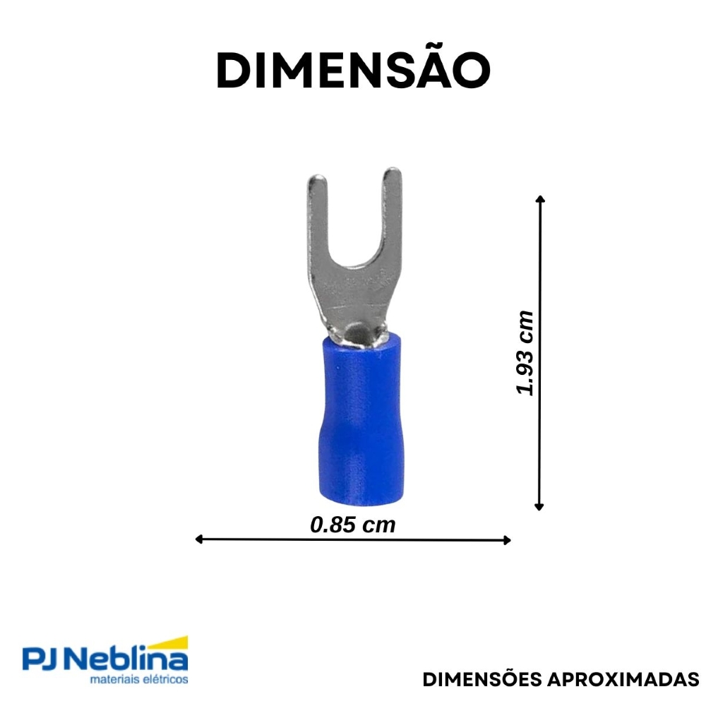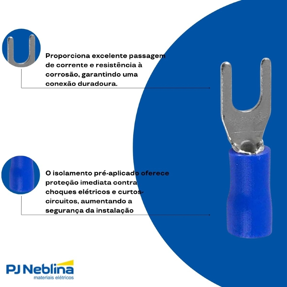 - Terminal tipo forquilha pré-isolado, ideal para condutores de 1,50 a 2,50 mm² (bitola 16-14 AWG).