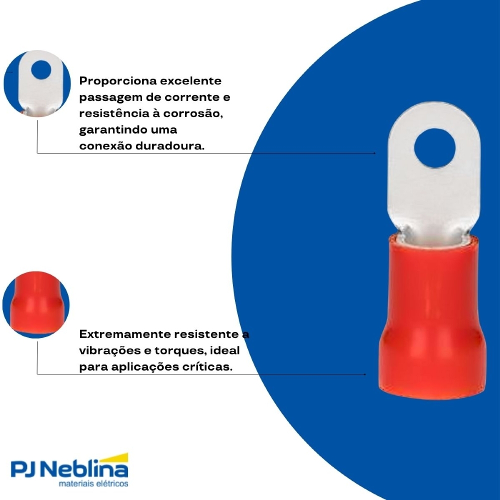 - Terminal elétrico tipo olhal (anel), projetado para conexões seguras e de alta confiabilidade.