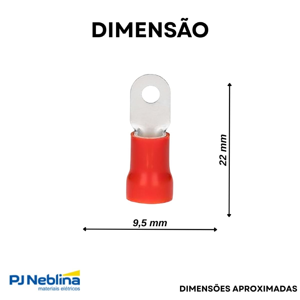 Terminal Olhal 0,50-1,50Mm (22-16Awg) Pré-Isolado Vermelho 1 Furo F=5Mm 3/16 (M5) - Axt - 100 Unidades - Código Fabricante: A-1005-5