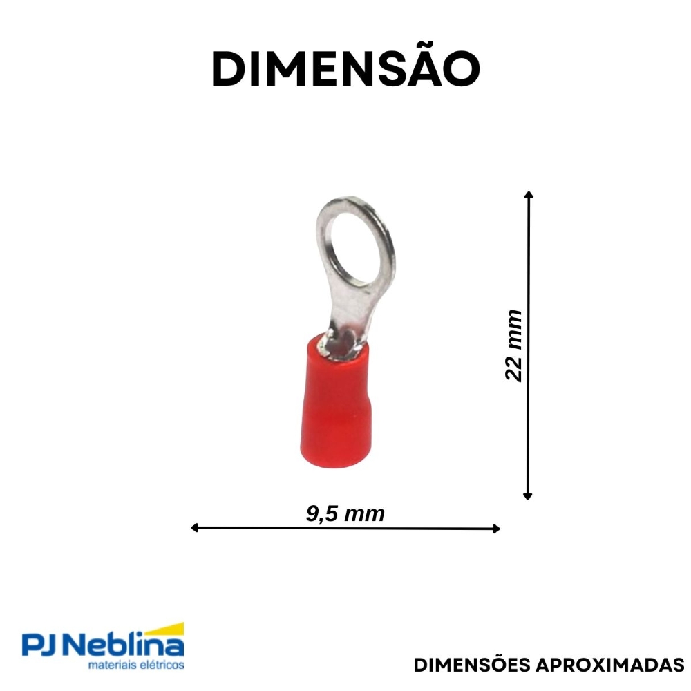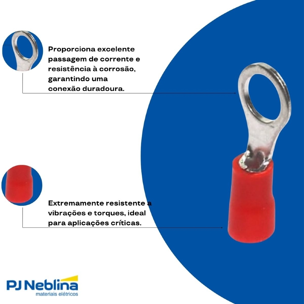 - Terminal elétrico tipo olhal (anel), projetado para conexões seguras e eficientes.