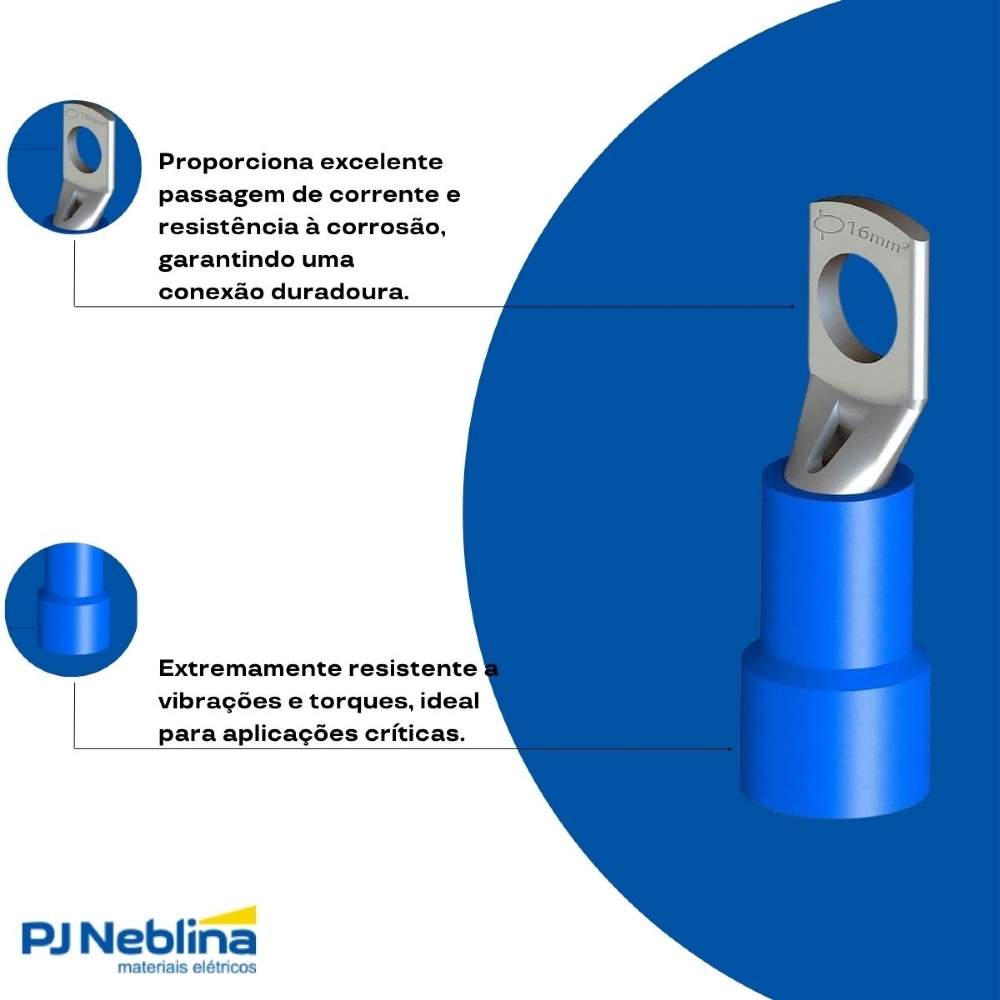Terminal Olhal 16 mm (6Awg) Pré-Isolado Azul 1 Furo F=8Mm 5/16 (M8) - Intelli - 100 Unidades - Código Fabricante: 5893
