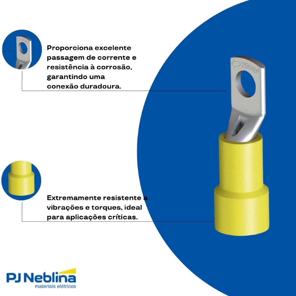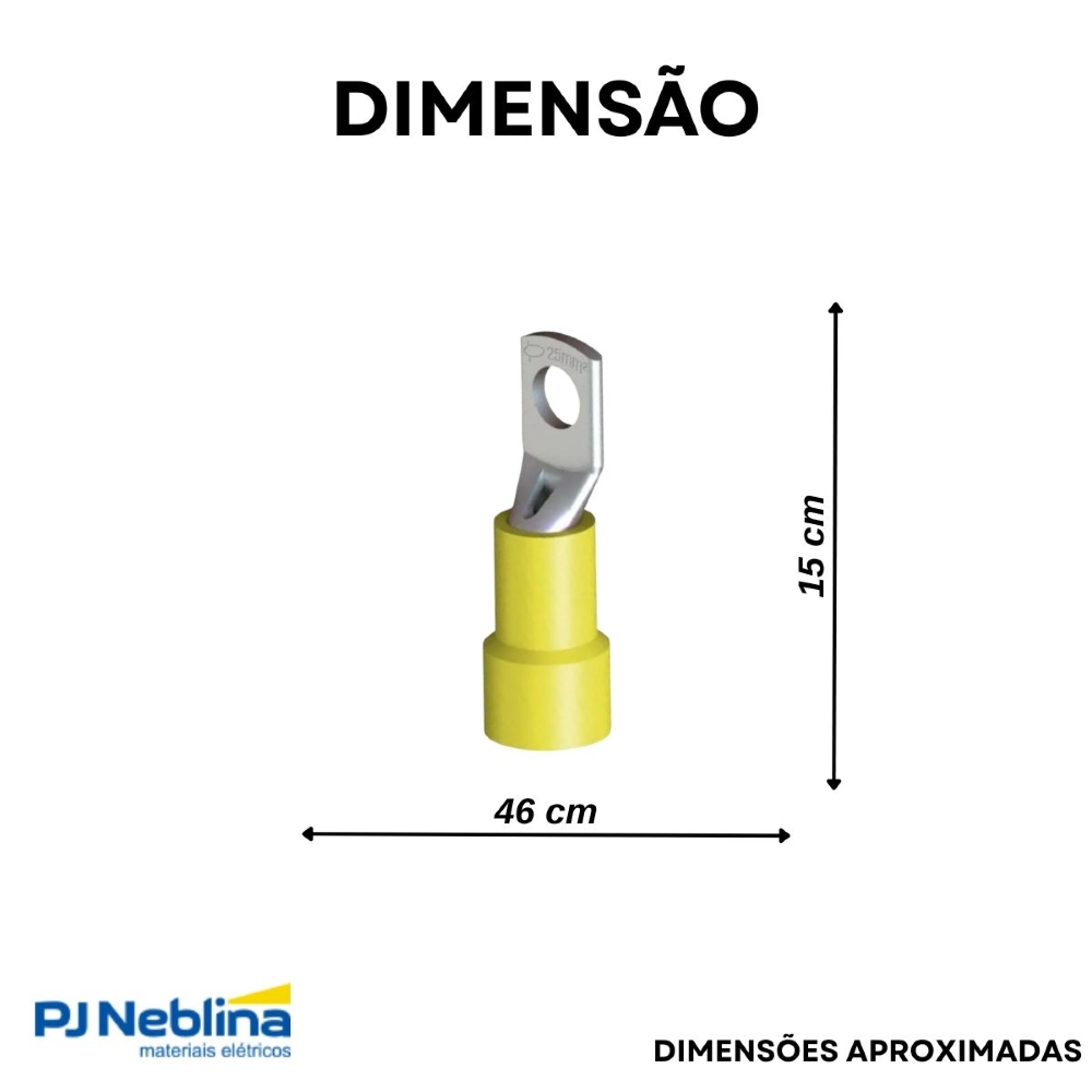 Terminal Olhal 25Mm (4Awg) Pré-Isolado Amarelo 1 Furo F=5Mm 3/16 (M5) - Intelli - 100 Unidades - Código Fabricante: TPT-25-5