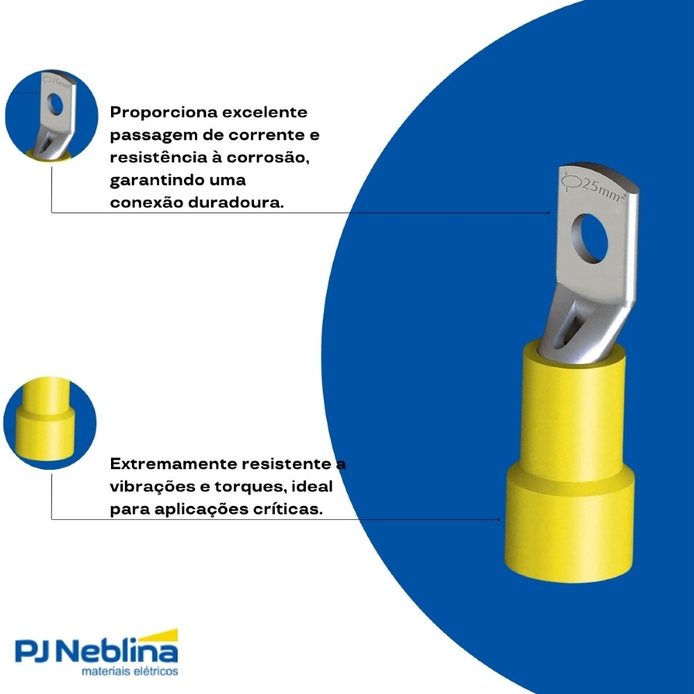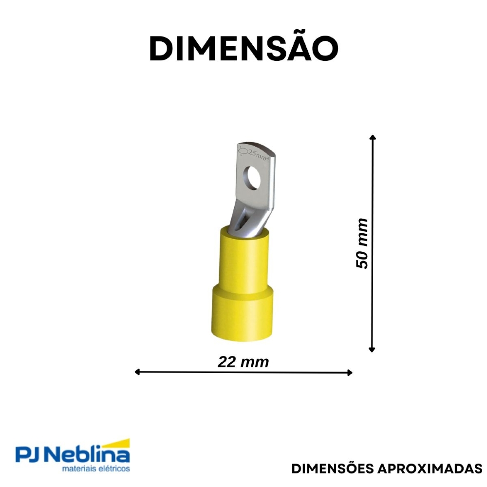 Terminal Olhal 25Mm (4Awg) Pré-Isolado Amarelo 1 Furo F=8Mm 5/16 (M8) - Intelli - 100 Unidades - Código Fabricante: TPT-25-8