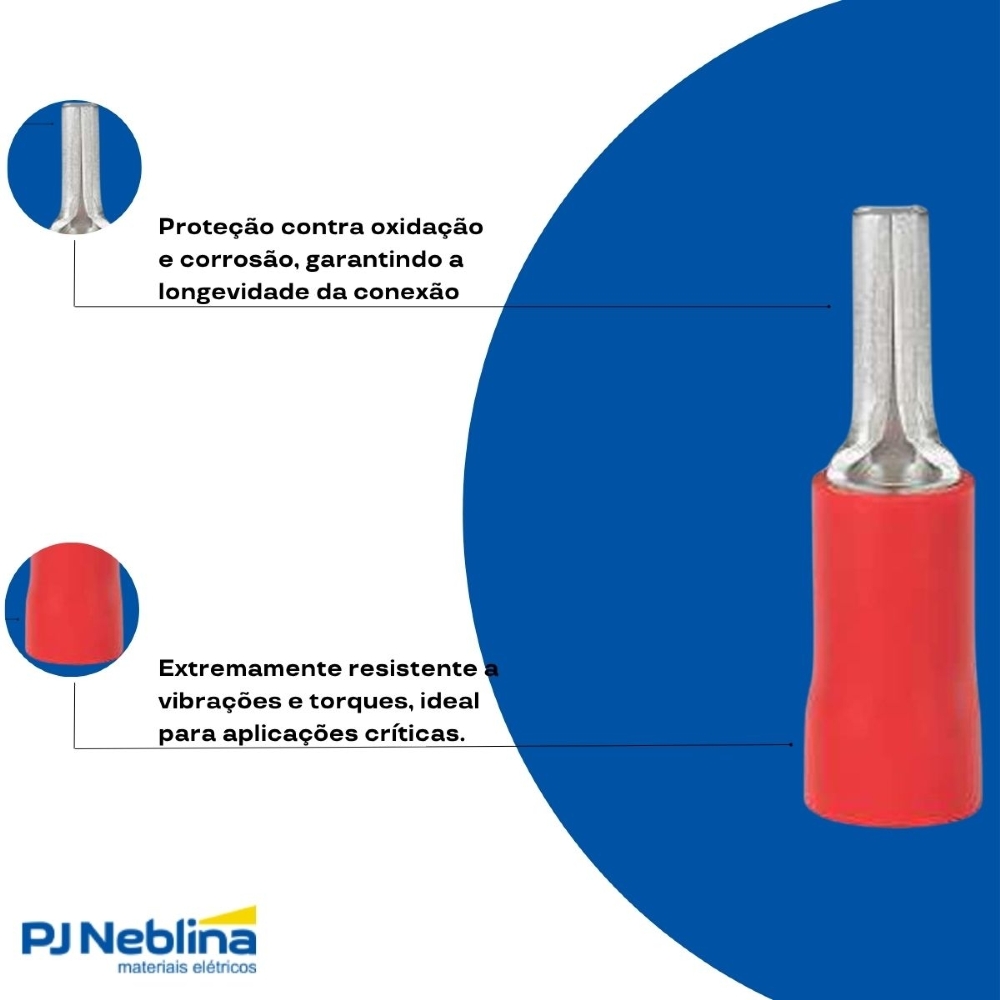 Terminal Pino 10Mm (8Awg) Pré-Isolado Vermelho - Axt - 100 Unidades - Código Fabricante: P-1035
