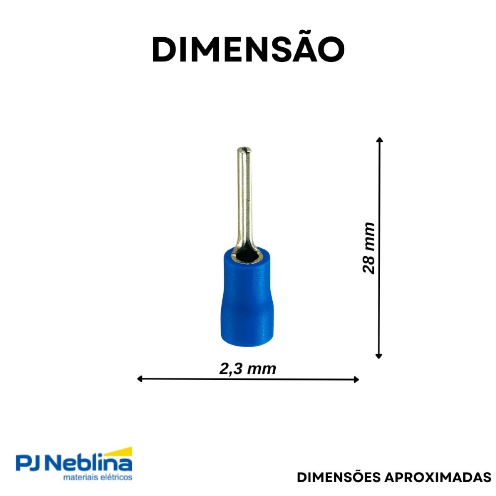 Terminal Pino Longo 1,50-2,50Mm (16-14Awg) Pré-Isolado Azul - Axt - 100 Unidades - Código Fabricante: P-1033-L