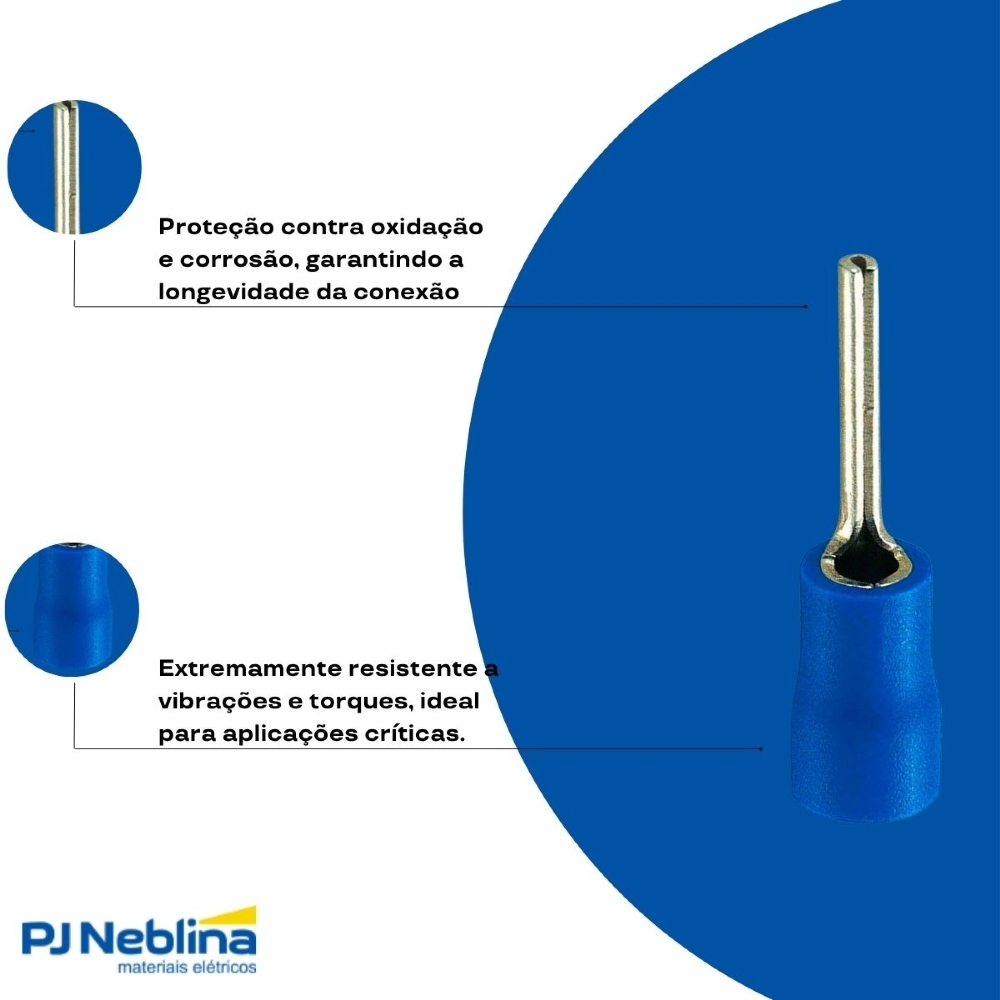 Terminal Pino Longo 1,50-2,50Mm (16-14Awg) Pré-Isolado Azul - Magnet - 100 Unidades - Código Fabricante: 882201