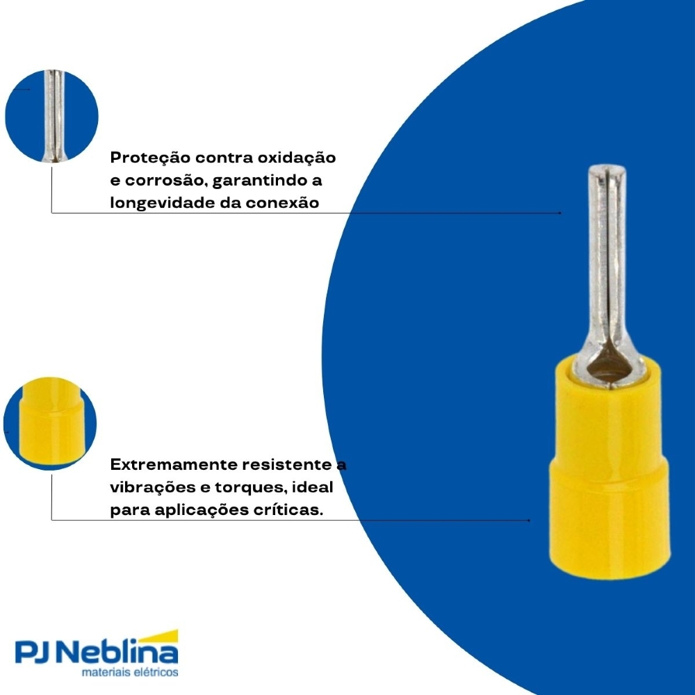 Terminal Pino Longo 4,00-6,00Mm (12-10Awg) Pré-Isolado Amarelo - Magnet - 100 Unidades - Código Fabricante: 882300