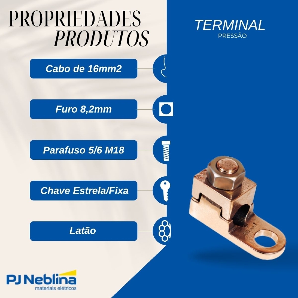 - Compatível com cabos de 16 mm² – ideal para conexões elétricas robustas.