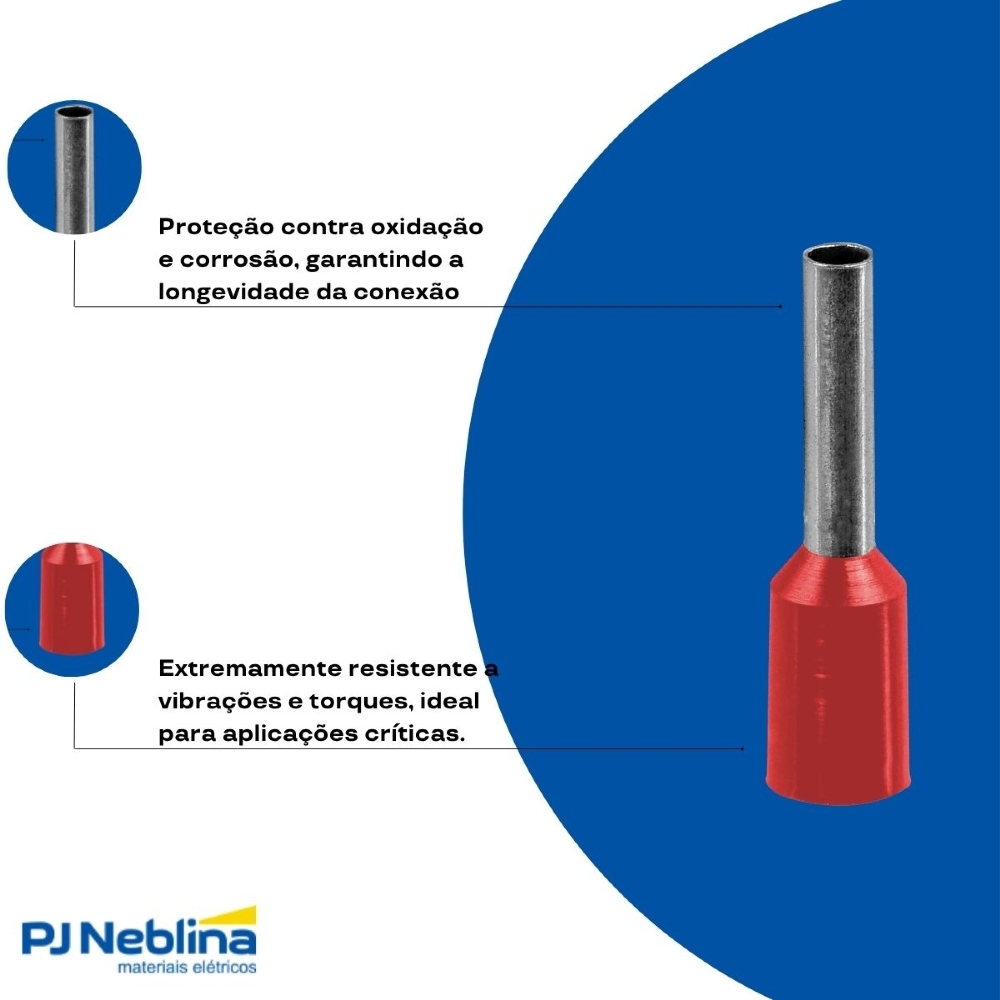 Terminal Tubular (Ilhos) 1,00Mm (17Awg) Pré-Isolado Vermelho - Conexel - 100 Unidades - Código Fabricante: 9019080000