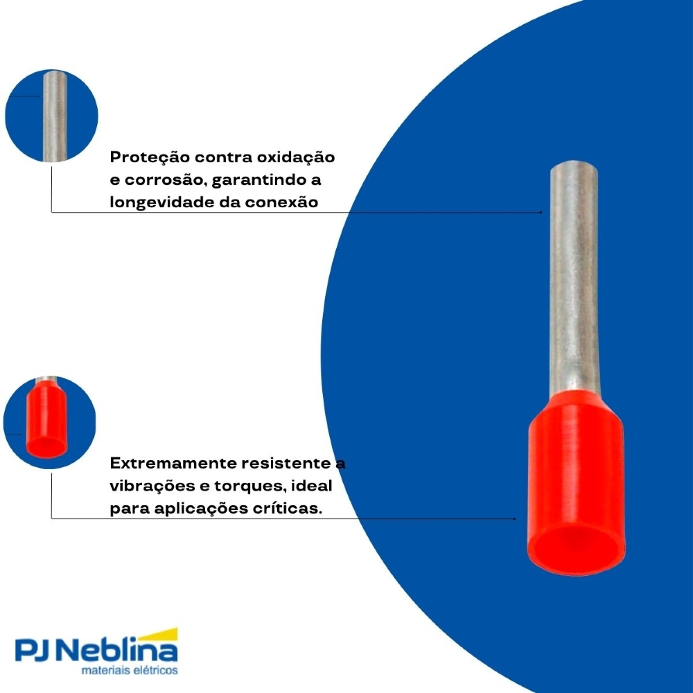 Terminal Tubular (Ilhos) 1,00Mm (17Awg) Pré-Isolado Vermelho - Intelli - 100 Unidades - Código Fabricante: 1001