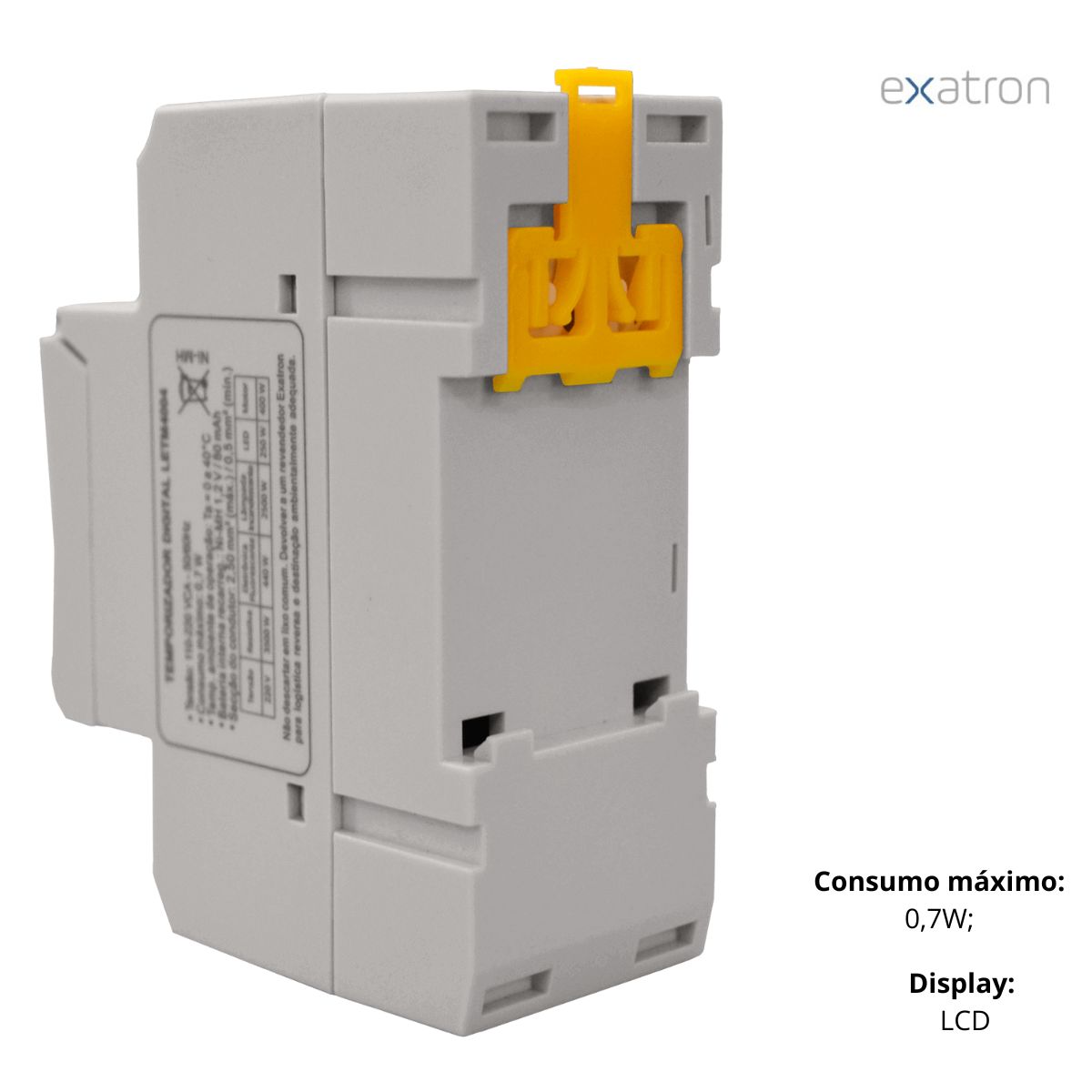 O Temporizador Digital para Trilho DIN Exatron (LETM4004) é ideal para ligar e desligar aparelhos elétricos ou eletrônicos em horários programados pelo usuário, como: refletores, luminárias, anúncios luminosos, sinalizadores, TVs, rádios, dentre outros.