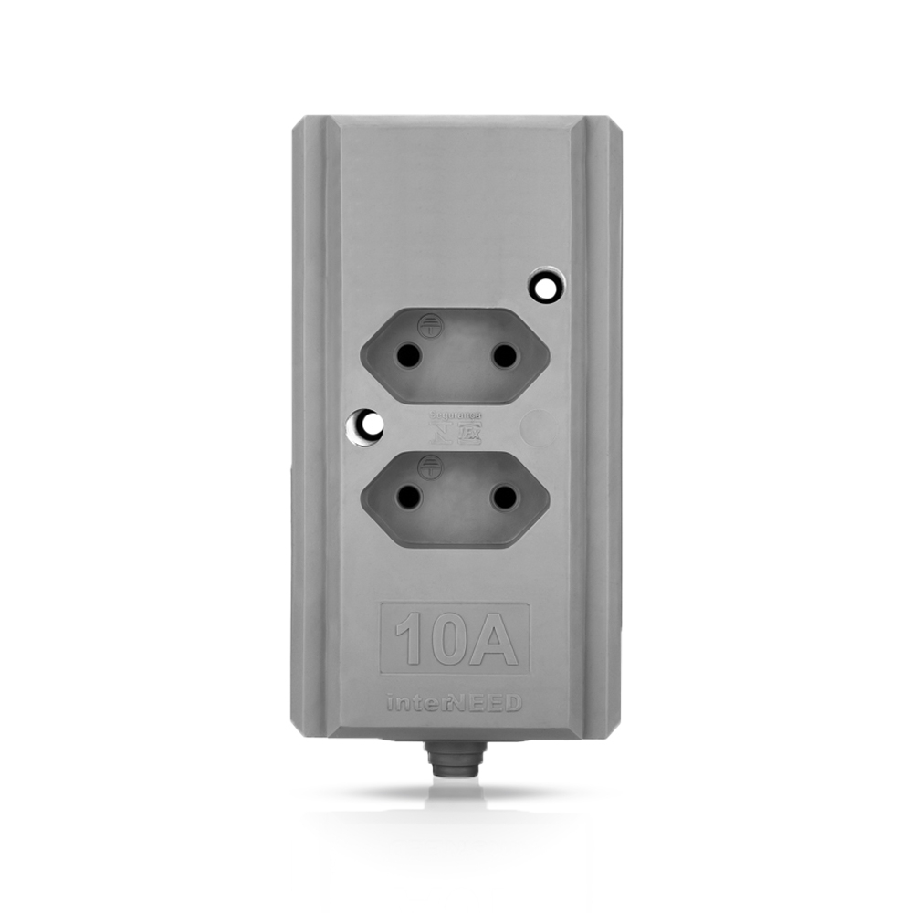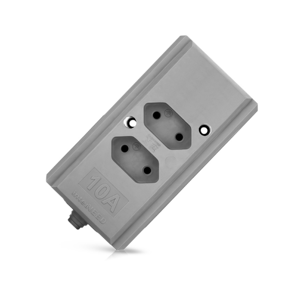 Tomada Barra Hercules 10/20A 2P+T 2 Tomadas Cinza Interneed