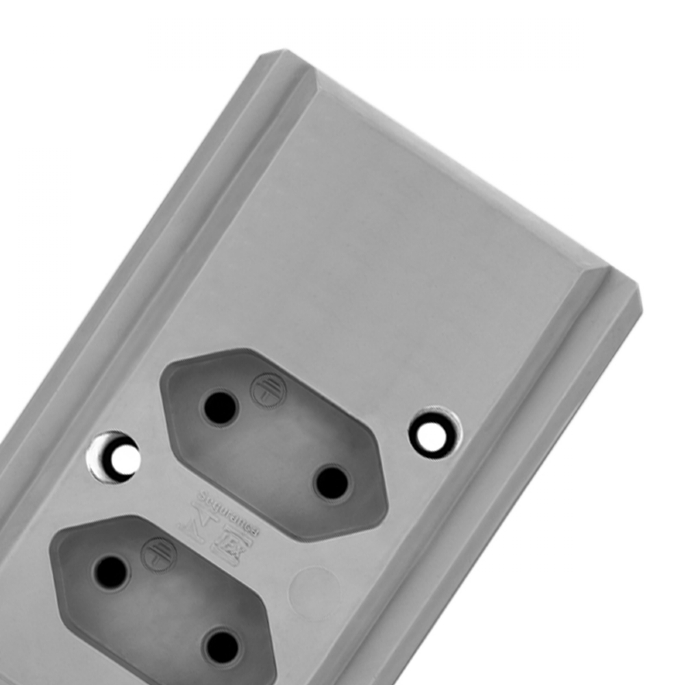 A Tomada Barra Hercules Dupla 10/20A 2P+T possui um design moderno e atraente, com a coloração cinza, pcom a capacidade de poder equipar até 2 equipamentos simultaneamente.