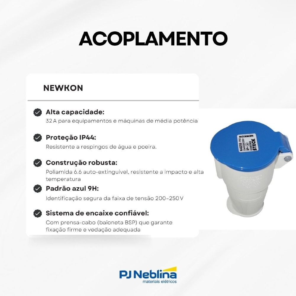 Acoplamento Newkon IP44 3P+T 220/240V 32A Azul Steck