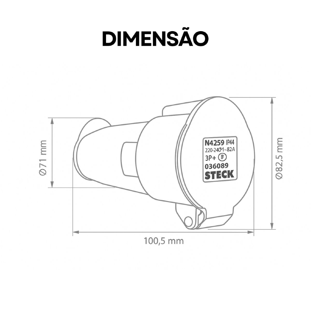 • Configuração elétrica 3P+T (três polos + terra): Ideal para sistemas trifásicos com aterramento, garantindo segurança nas conexões.