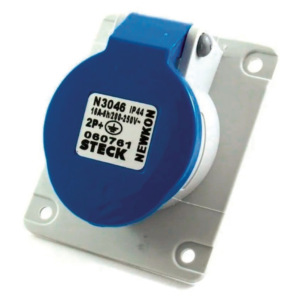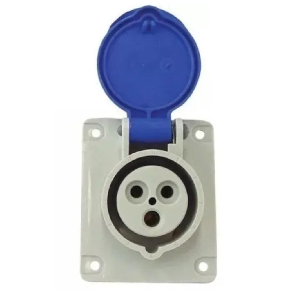 Tomada Industrial Fêmea Embutir 2P+T 16A 220/240V 6H Azul N3046 Newkon Steck