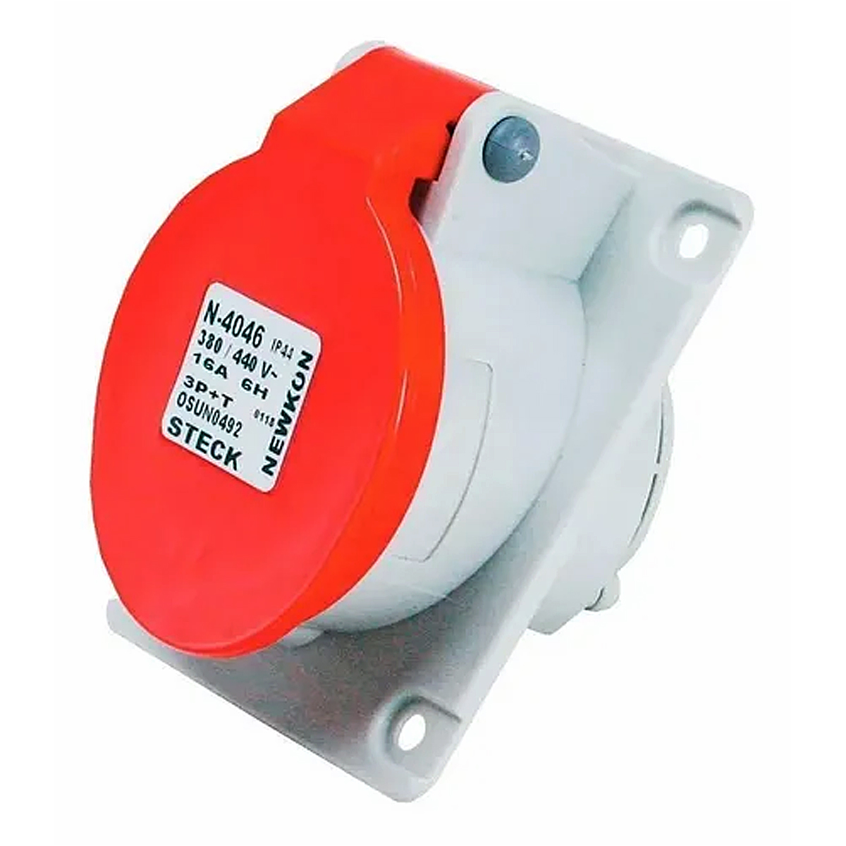 Tomada Industrial Fêmea Embutir 3P+T 16A 380/440V 6H Vermelho N4046 Newkon Steck
