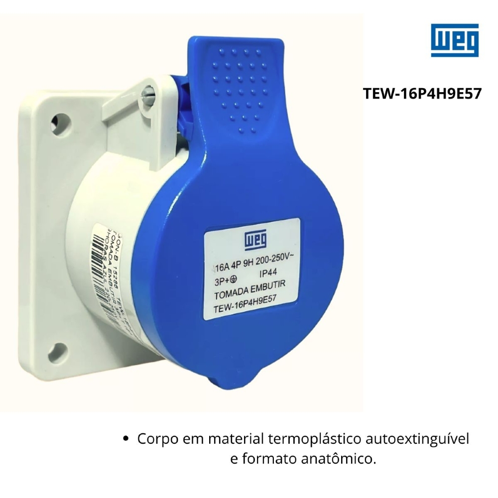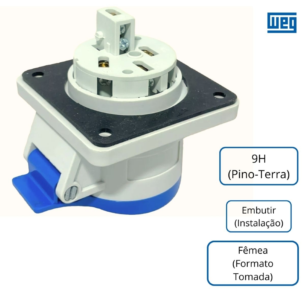 Tomada Industrial Fêmea Embutir 3P+T 16A 200/250V Azul 9H Ip44 Premium Weg