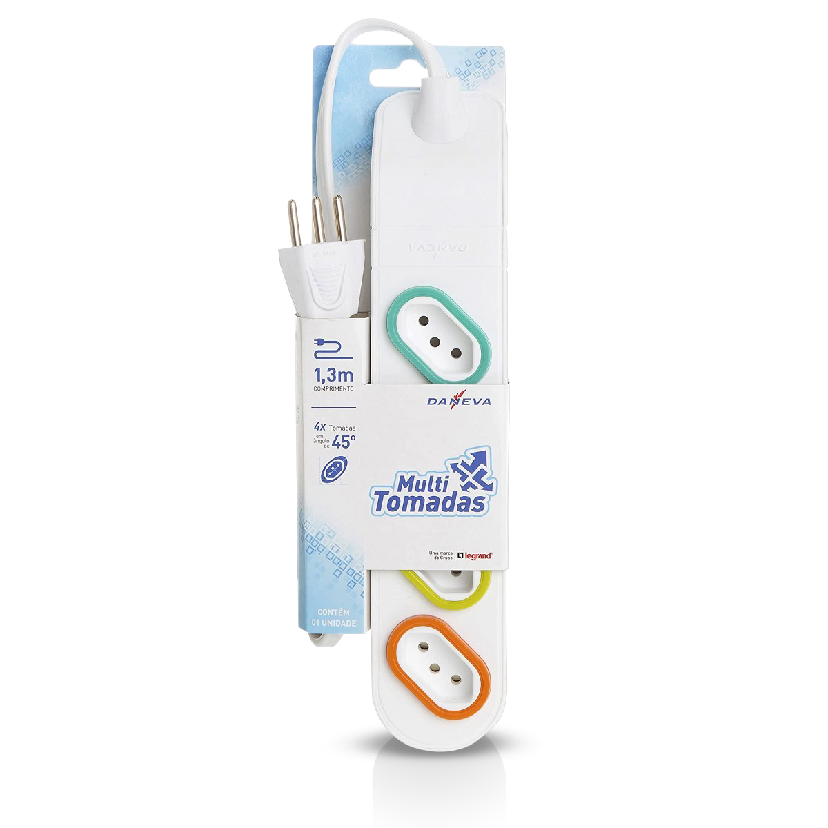 Extensão Elétrica Multitomadas Branco 1,30m 10A 4 Tomadas Daneva