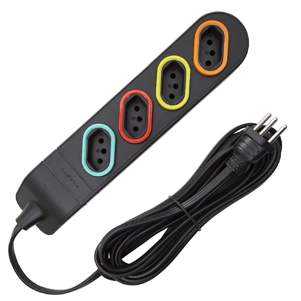 Tomada Multi Extensão 4 Tomadas 10A 2P+T Preto 5 Metros Daneva