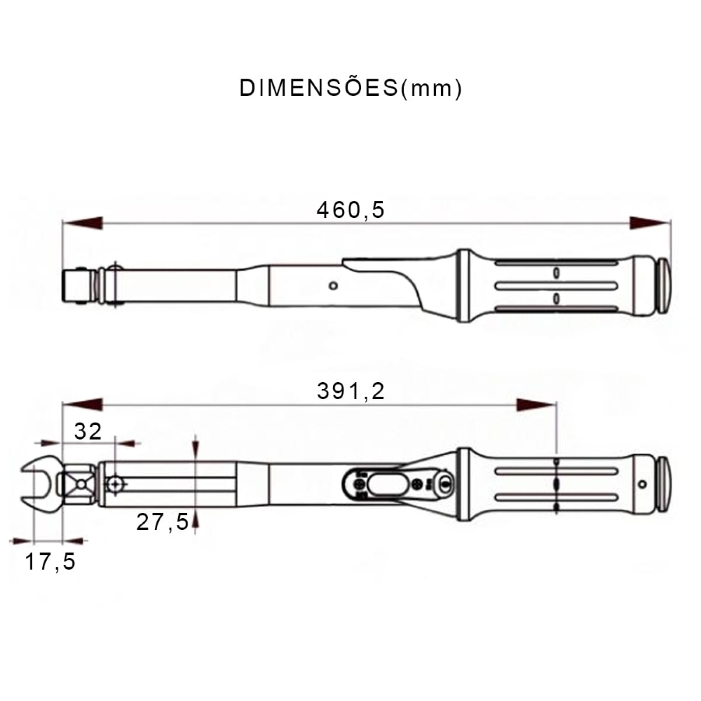Design moderno com destaque para o ajuste da escala. Este torquímetro possui um anel próximo ao punho com escala de excelente resolução. As escalas em N.m e lbf.pé para ajuste preciso de torção estão protegidas por um visor com efeito de lupa. O funcionamento é no sentido horário (à direita) e anti-horário (à esquerda).