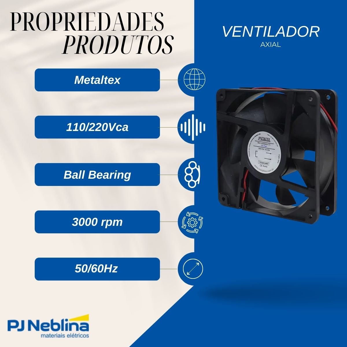 Ventilador 110/220Vca 120X120X38Mm Ball 3000Rpm - Metaltex - Código Fabricante: I15385