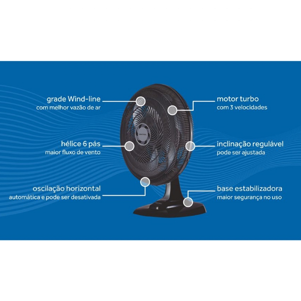 A Ventisol garante aos consumidores a confiança,qualidade,durabilidade e preço justo em nossos produtos. Onde os parceiros encontram um aliado para crescer junto. Na Ventisol voce encontra uma empresa familiar de máquinas e produtos, referencia no mercado nacional. Com o Ventilador De Mesa Turbo Premium 127V 135W 50CM Preto a resolução de suas necessidades com eficácia e qualidade, a tranquilidade e confiabilidade é garantida.