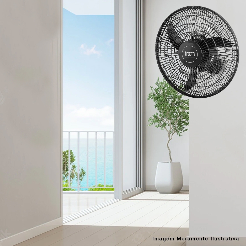 Ventilador De Parede Oscilante Bivolt 50cm Preto 3 Pás Grade Pp Polipropileno Tron Ventiladores